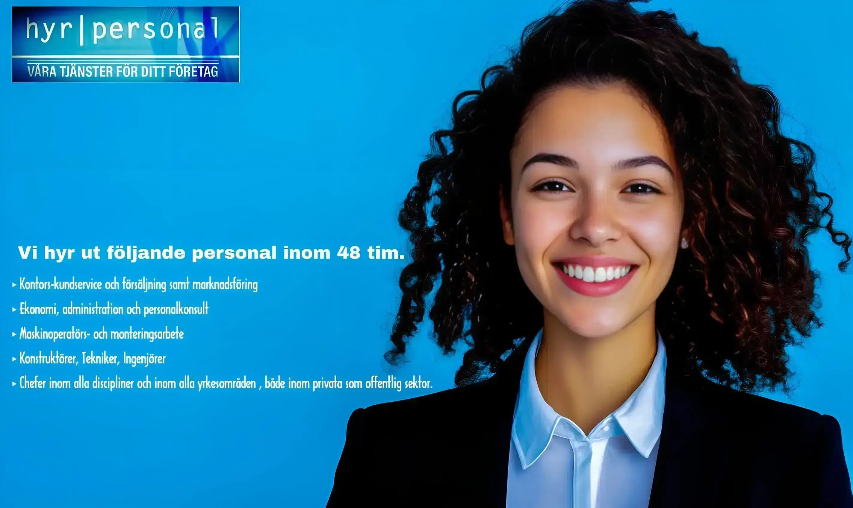 - Hyrpersonal Sverige hyr ut personal för lång och kort tid, akut personalbrist, sjukdom eller vid tillfälliga arbetstoppar. Allt enligt kundens önskemål.